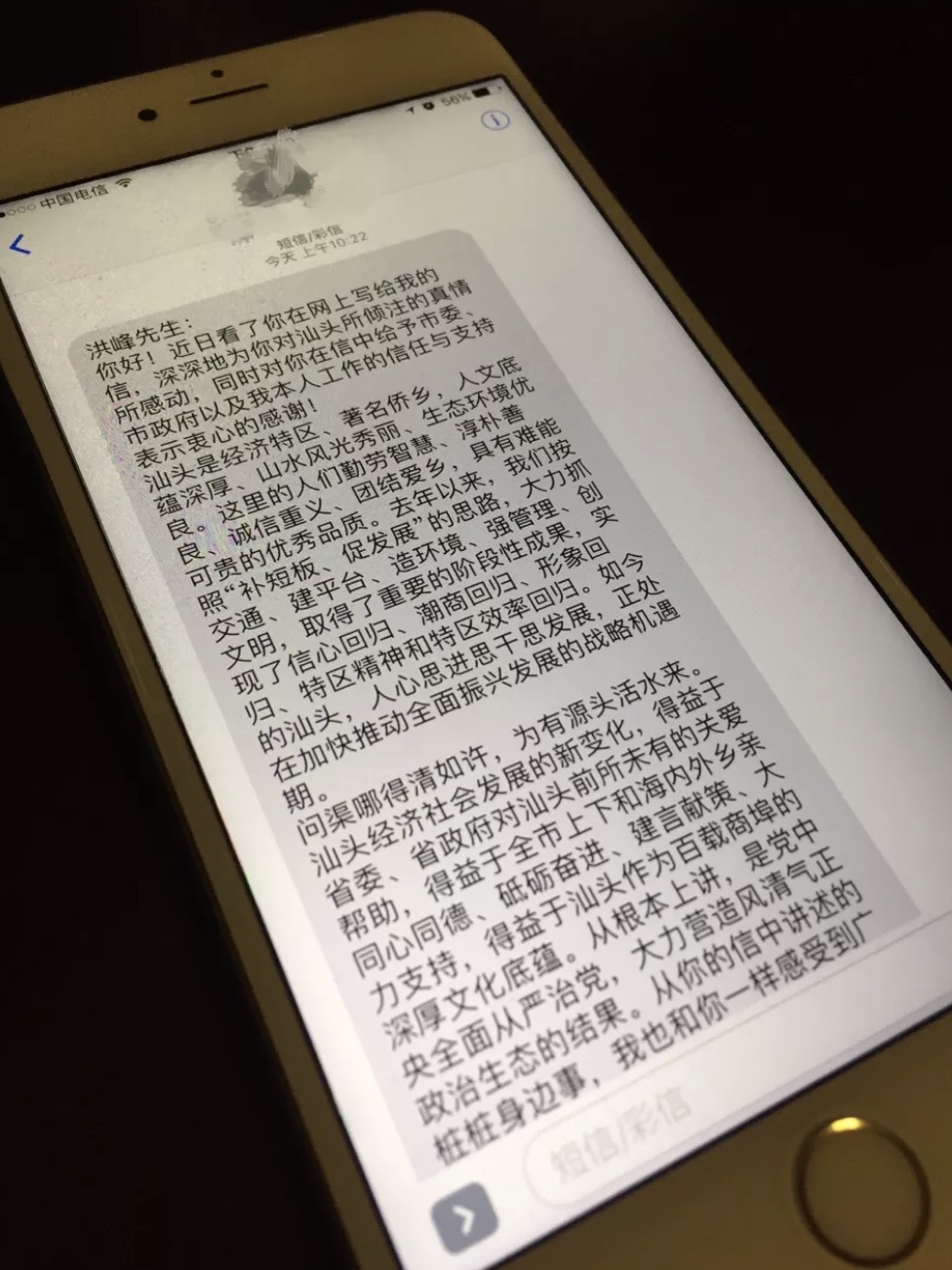 二来,回信内容也是鼓舞人心。书记不仅“顶”了我的赤子情怀,还说他们做的都是“份内事”,都是“胶己人”应该做好的“家务活”。我想说,如果我们都把自己的”份内事“和”家务活“都这么高水准的保持下去,我们大潮汕,直作硬的!